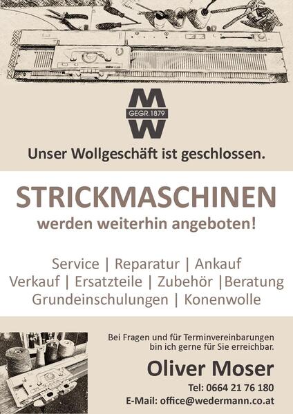 Des Weiteren haben Sie bei uns in Siegendorf (Burgenland) die Möglichkeit, Haushaltsstrickmaschinen inklusive Wolle zu erwerben. Sie sind seit 1978 Teil der Produktpalette. Bei Bedarf gibt Ihnen unser familiengeführter Handelsbetrieb gerne weitere Auskünfte dazu.